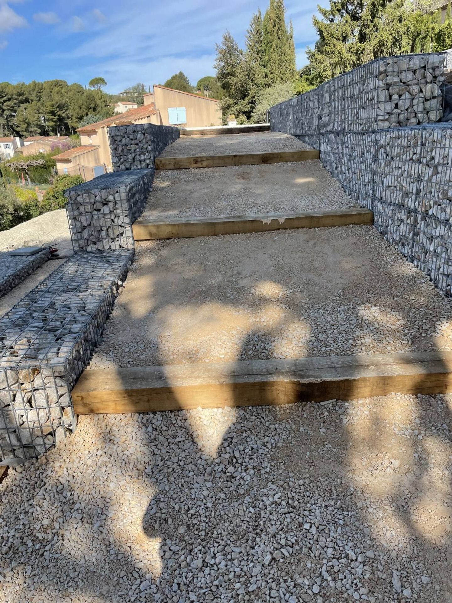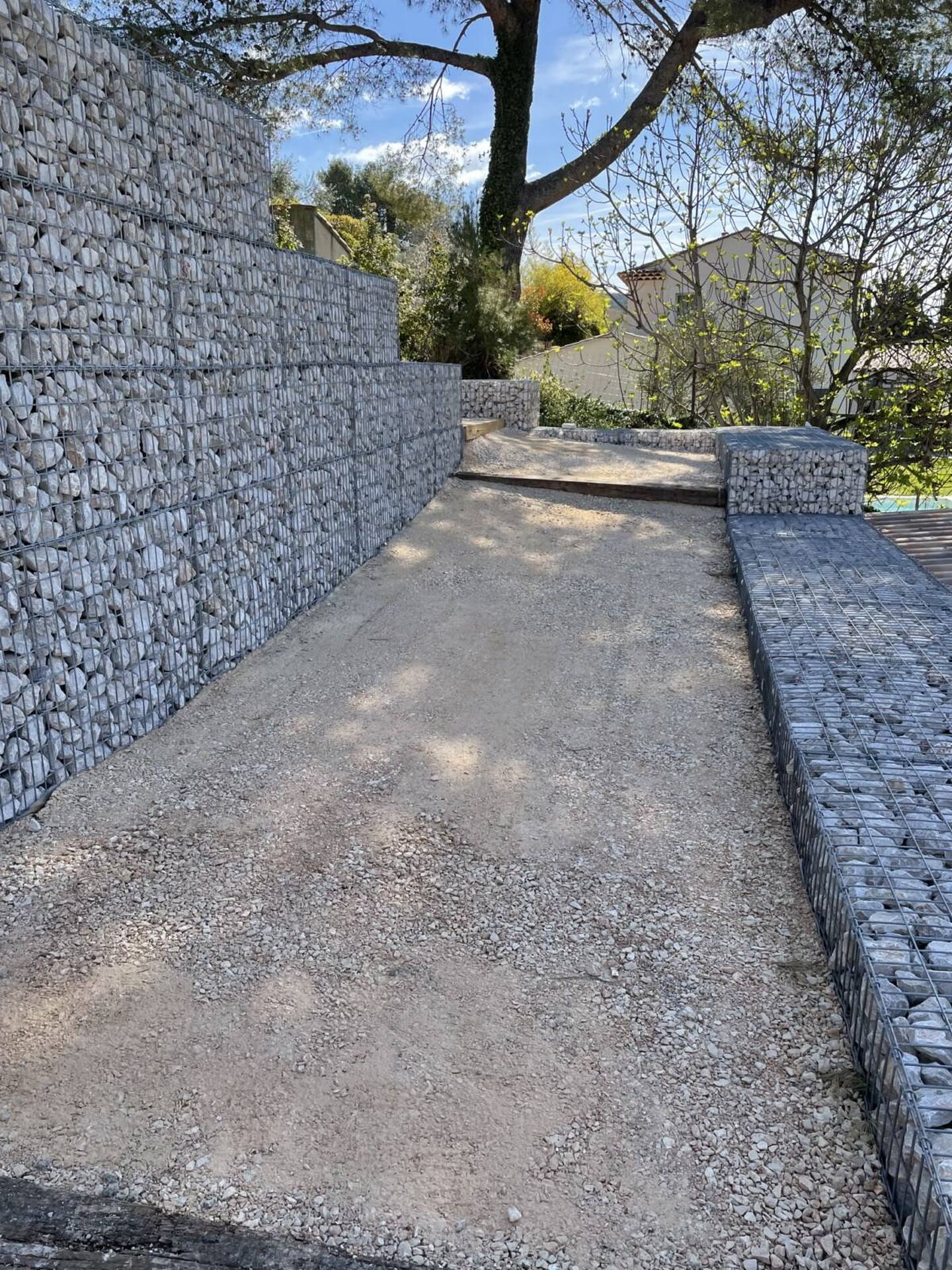 Terraplant réalise la construction de murs de soutènement en gabion dans tout le Pays d’Aix. Ce sont des cages métalliques remplies de cailloux utilisées pour retenir la terre et prévenir les éboulements, les glissements des terrains en pente.