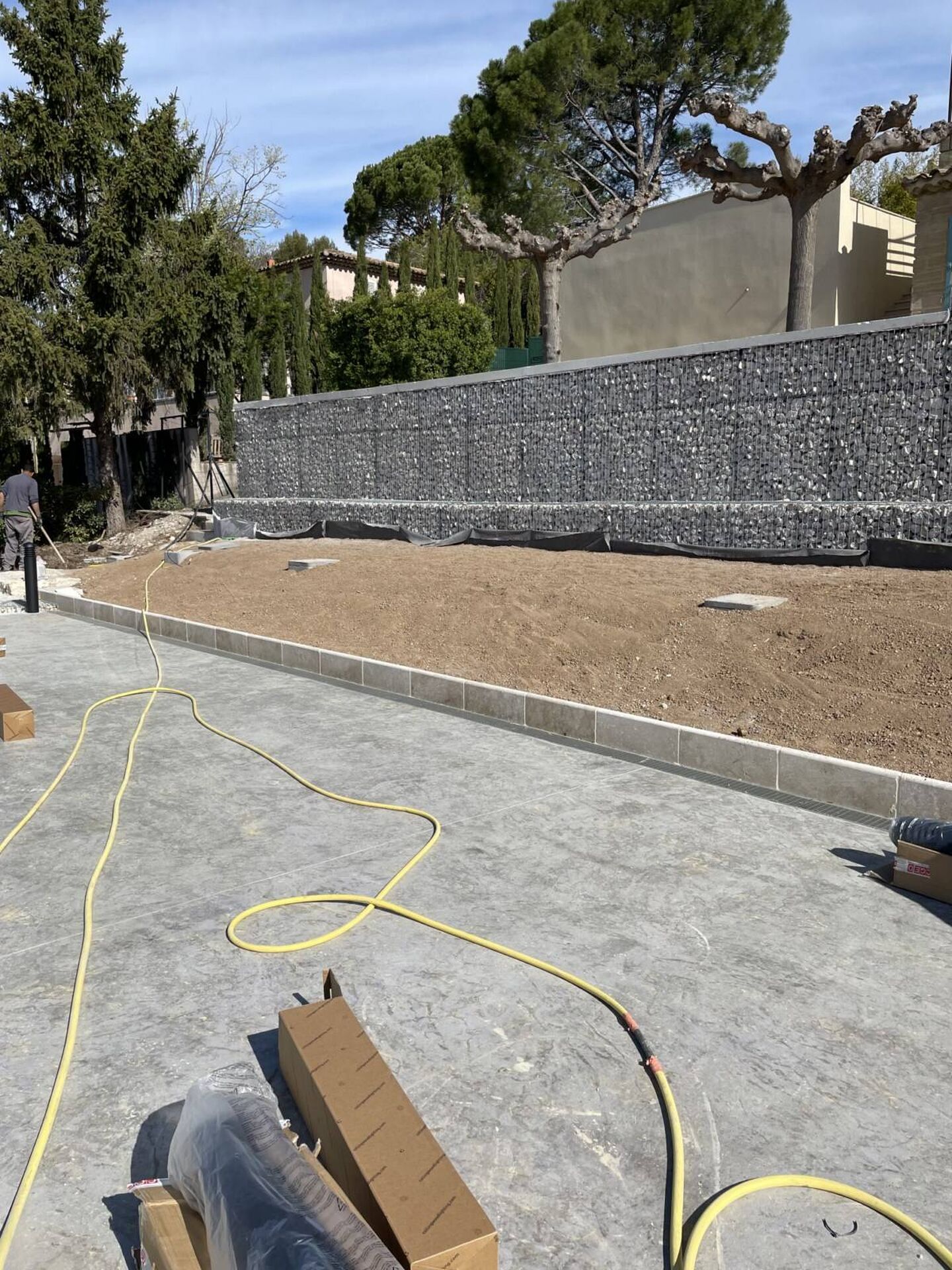 Une préparation au sol est réalisée dans un premier temps pour soutenir le mur selon la nature du terrain et de la hauteur du mur souhaitée.
