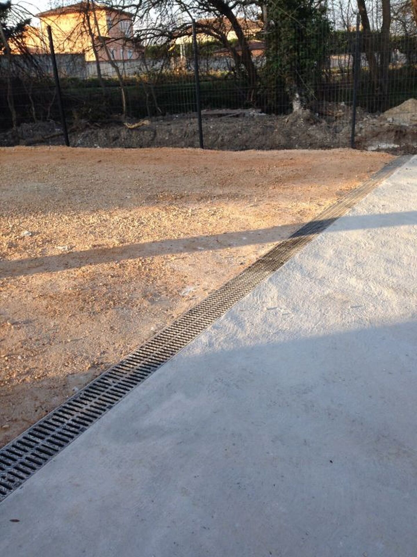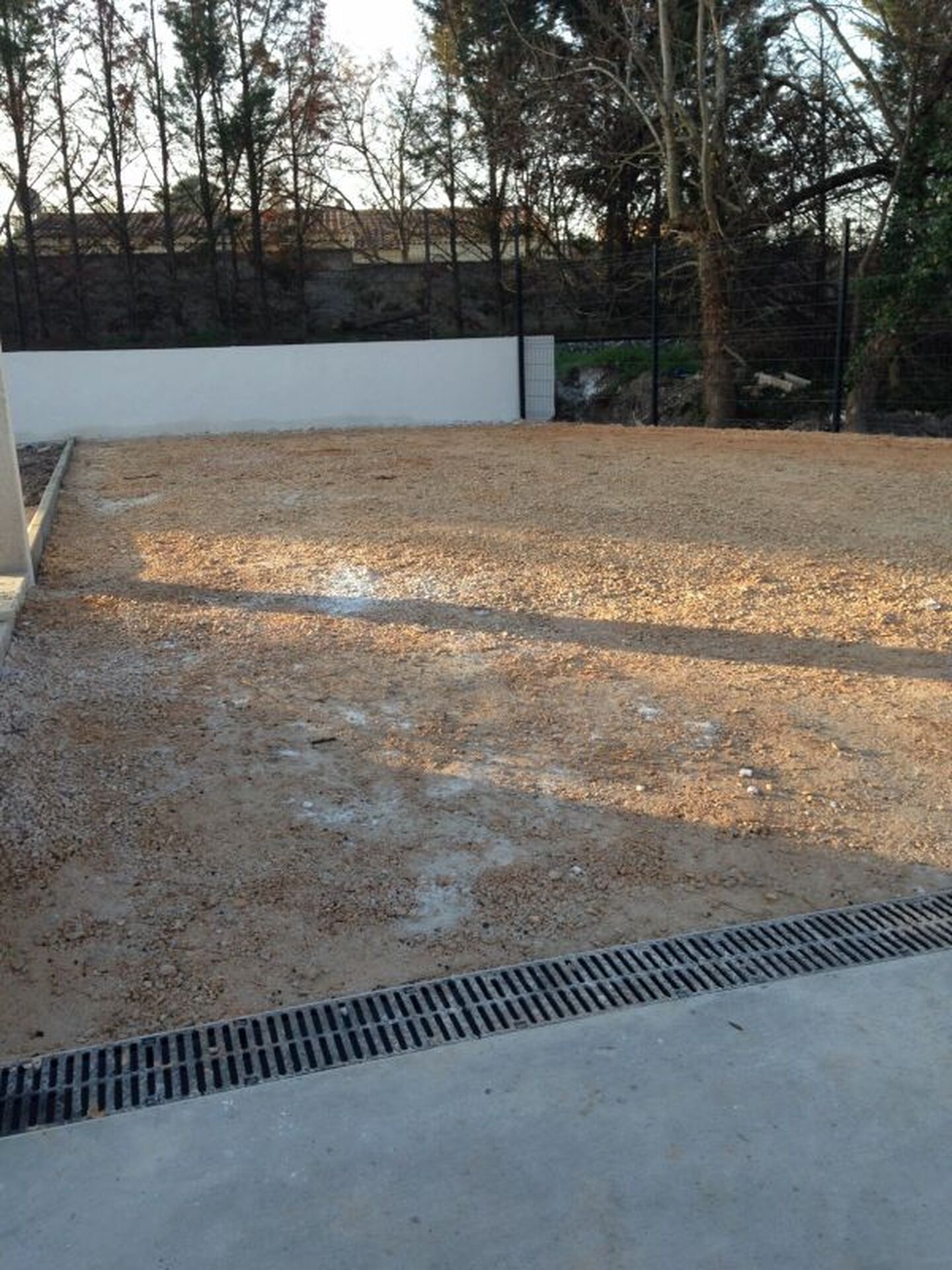La maçonnerie terminée, nous avons installé un géotextile sous une couche de 20 cm de tout venant que nous avons compacté par la suite.