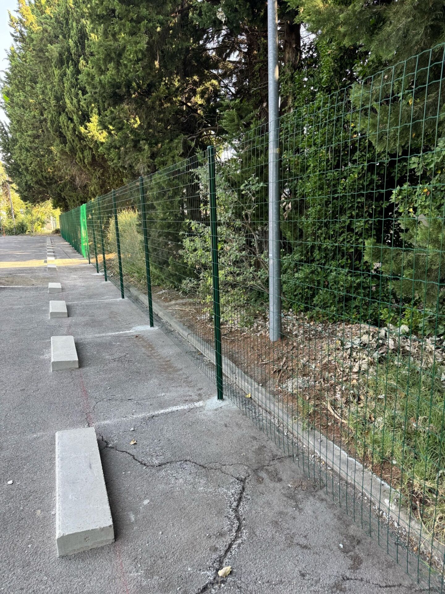 L’intervention débute par l’élagage et l’évacuation de la haie existante. Vient ensuite la fourniture et la pose d’un grillage soudé avec scellement des poteaux. Cette étape garantit la protection du site et délimite clairement la zone de stationnement à Avignon dans le Vaucluse.